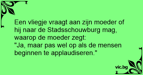 Een vliegje vraagt aan zijn moeder of hij naar de Stadsschouwburg mag, waarop de moeder zegt: