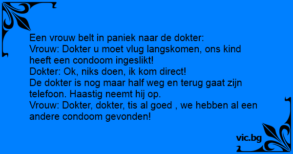 Vrouw: Dokter u moet vlug langskomen, ons kind heeft een condoom ingeslikt!
