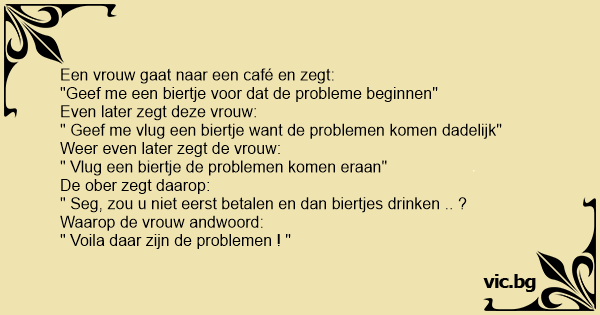 " Geef me vlug een biertje want de problemen komen dadelijk"