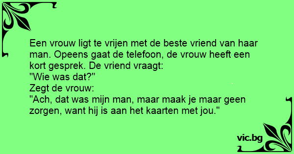 "Ach, dat was mijn man, maar maak je maar geen zorgen, want hij is aan het kaarten met jou."