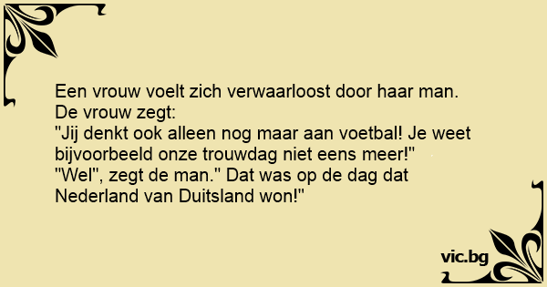 "Wel", zegt de man." Dat was op de dag dat Nederland van Duitsland won!"
