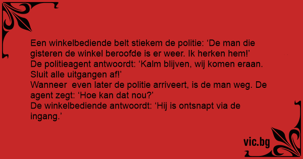 De winkelbediende antwoordt: ‘Hij is ontsnapt via de ingang.’