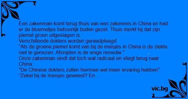"Als de groene piemel komt van bij de meisjes in China is de ziекте niet te genezen. Afsnijden is de enige remedie."