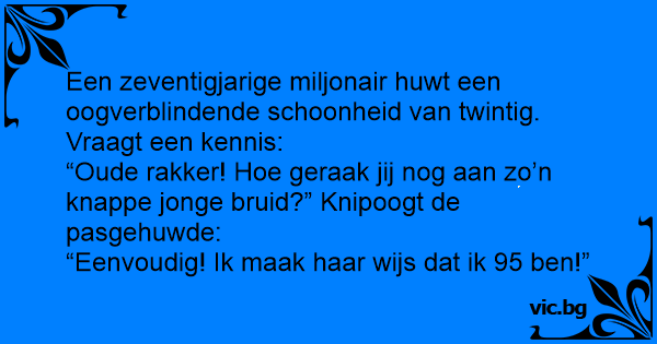 Een zeventigjarige miljonair huwt een oogverblindende schoonheid van twintig. Vraagt een kennis:
