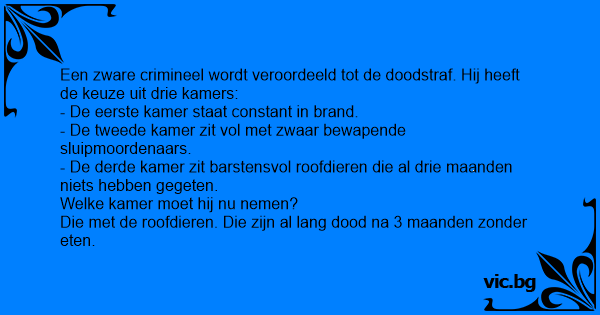 Een zware crimineel wordt veroordeeld tot de doodstraf. Hij heeft de keuze uit drie kamers: