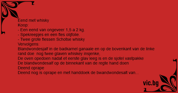 Blandwondesjalf in de badkarnel ganaale en op de bovenkant van de linke rand doe nog twee glaven whiskey insjenke,
