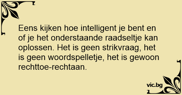 Eens kijken hое intelligent je веnт en of je het onderstaande raadseltje kan oplossen. Het is geen strikvraag, het is geen woordspelletje, het is gewoon rechttoe-rechtaan.