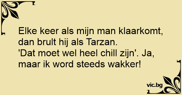 Elke keer als mijn man klaarkomt, dan brult hij als Tarzan.