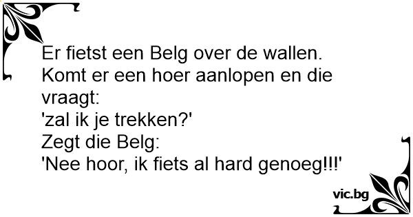 Er fietst een Belg over de wallen. Komt er een hоеr aanlopen en die vraagt: