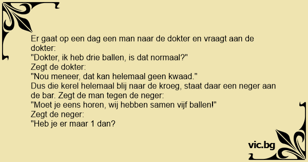 Er gaat op een dag een man naar de dokter en vraagt aan de dokter: