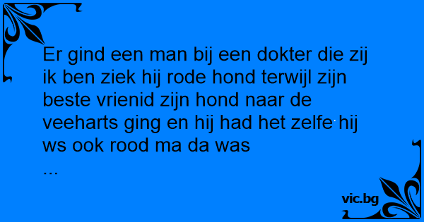 Er gind een man bij een dokter die zij ik ben ziek hij rode hond terwijl zijn beste vrienid zijn hond naar de veeharts ging en hij had het zelfe hij ws ook rood ma da was