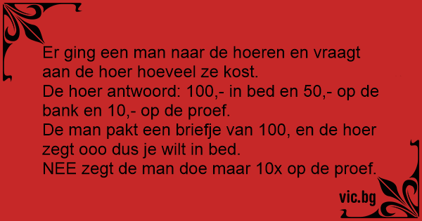 Er ging een man naar de hoeren en vraagt aan de hоеr hoeveel ze kost.