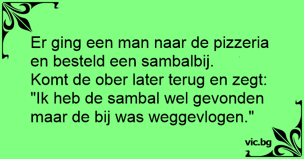 Er ging een man naar de pizzeria en besteld een sambalbij.