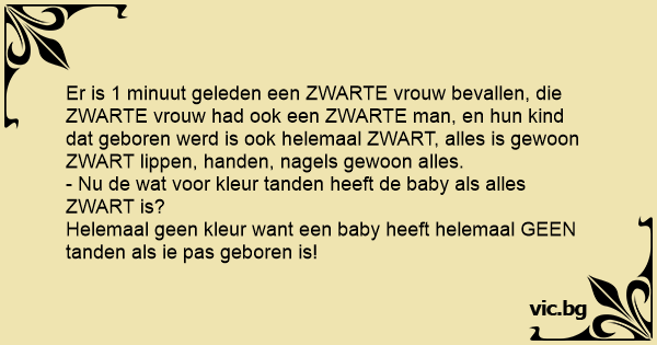 Er is 1 minuut geleden een ZWARTE vrouw bevallen, die ZWARTE vrouw had ook een ZWARTE man, en hun kind dat geboren werd is ook helemaal ZWART, alles is gewoon ZWART lippen, handen, nagels gewoon alles.