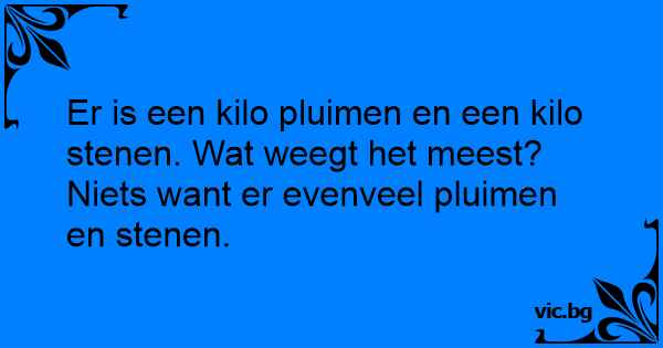 Er is een kilo pluimen en een kilo stenen. Wat weegt het meest?