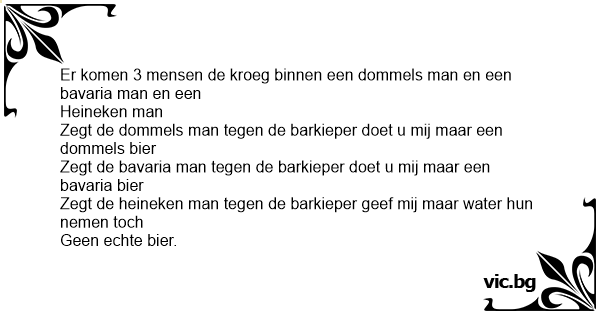 Er komen 3 mensen de kroeg binnen een dommels man en een bavaria man en een