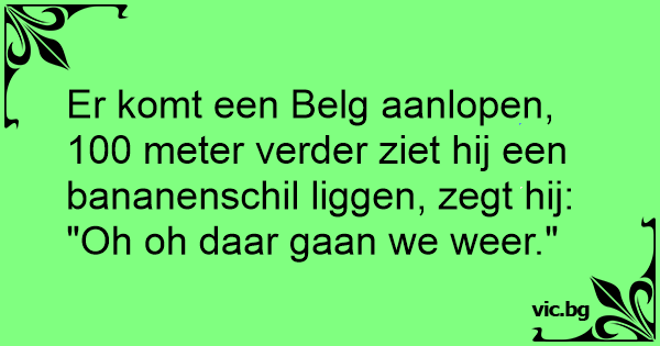 Er komt een Belg aanlopen, 100 meter verder ziet hij een bananenschil liggen, zegt hij: