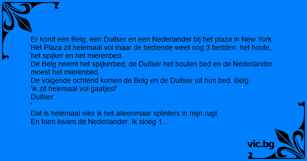 Er komt een Belg, een Duitser en een Nederlander bij het plaza in New York.