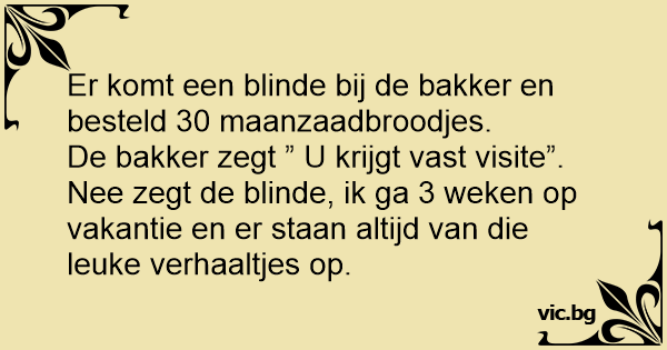 Er komt een blinde bij de bakker en besteld 30 maanzaadbroodjes.