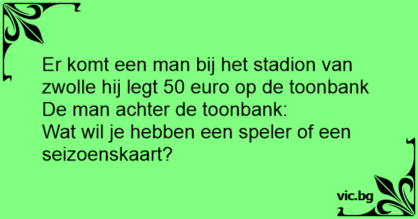 Er komt een man bij het stadion van zwolle hij legt 50 euro op de toonbank De man achter de toonbank: