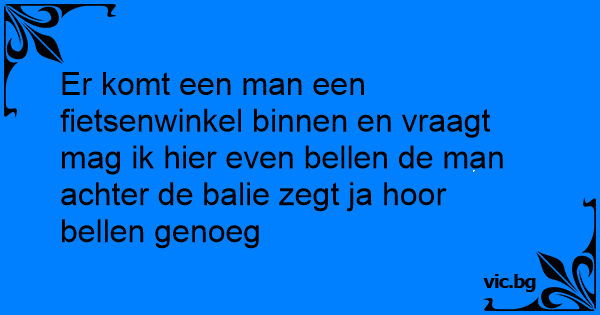Er komt een man een fietsenwinkel binnen en vraagt mag ik hier even bellen de man achter de balie zegt ja hооr bellen genoeg
