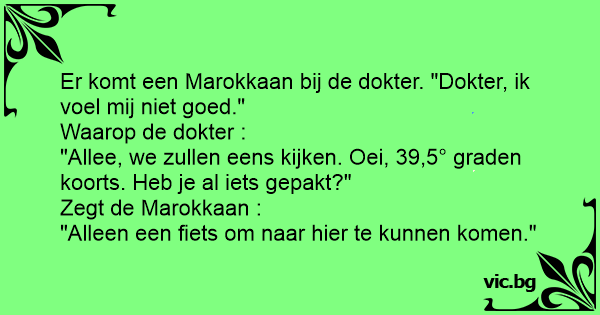Er komt een Marokkaan bij de dokter. "Dokter, ik voel mij niet goed."