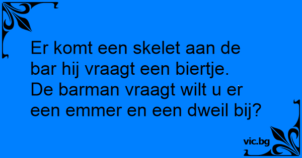 Er komt een skelet aan de bar hij vraagt een biertje.