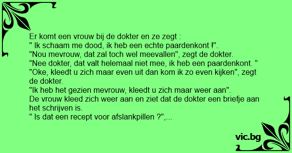 " Nee", zegt de dokter," u krijgt een vergunning om op straat te mogen schijten".
