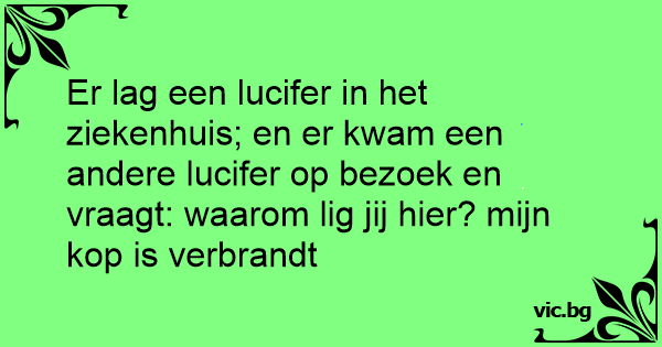 Er lag een lucifer in het ziekenhuis; en er kwam een andere lucifer op bezoek en vraagt: waarom lig jij hier? mijn кор is verbrandt