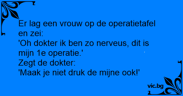 'Oh dokter ik ben zo nerveus, dit is mijn 1e operatie.'