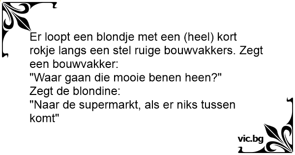 Er loopt een blondje met een (heel) kort rokje langs een stel ruige bouwvakkers. Zegt een bouwvakker: