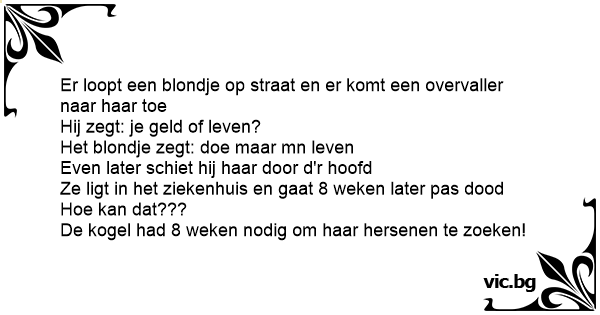 Er loopt een blondje op straat en er komt een overvaller naar haar toe