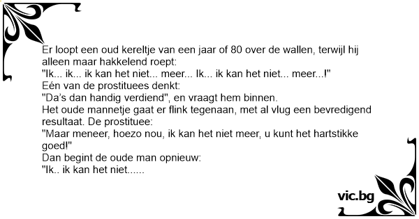 Het oude mannetje gaat er flink tegenaan, met al vlug een bevredigend resultaat. De prostituee: