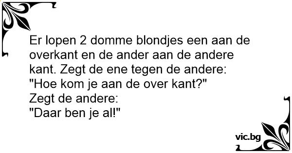 Er lopen 2 domme blondjes een aan de overkant en de ander aan de andere kant. Zegt de ene tegen de andere: