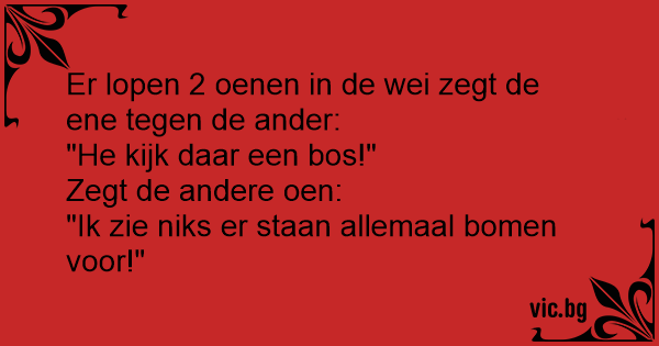 Er lopen 2 oenen in de wei zegt de ene tegen de ander:
