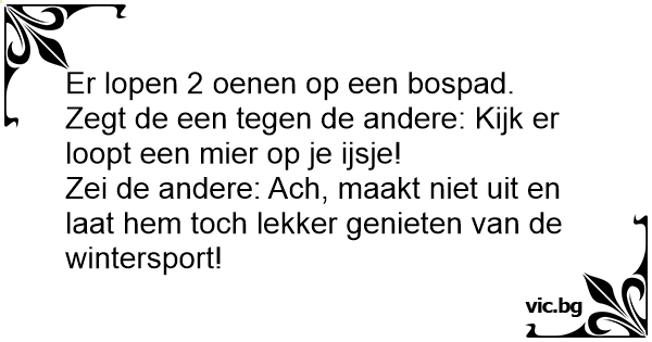 Zegt de een tegen de andere: Kijk er loopt een mier op je ijsje!