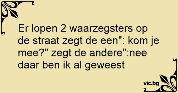 Er lopen 2 waarzegsters op de straat zegt de een": kom je mee?" zegt de andere":nee daar ben ik al geweest
