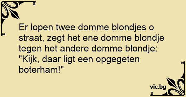 Er lopen twee domme blondjes o straat, zegt het ene domme blondje tegen het andere domme blondje: