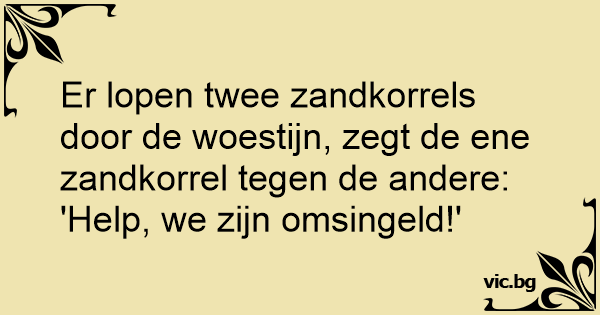 Er lopen twee zandkorrels door de woestijn, zegt de ene zandkorrel tegen de andere: