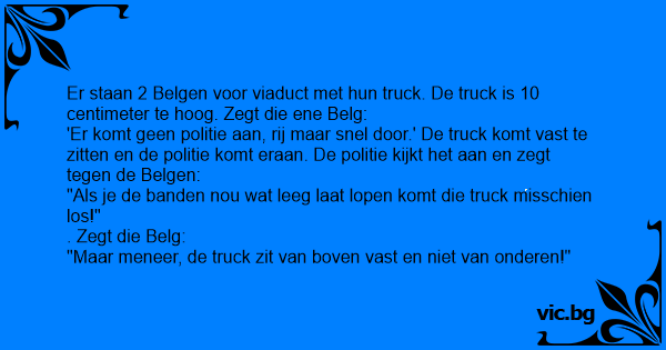 Er staan 2 Belgen voor viaduct met hun truck. De truck is 10 centimeter te hoog. Zegt die ene Belg: