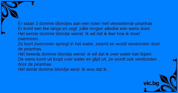 Het tweede domme blondje wenst: ik wil dat ik over water kan lopen.