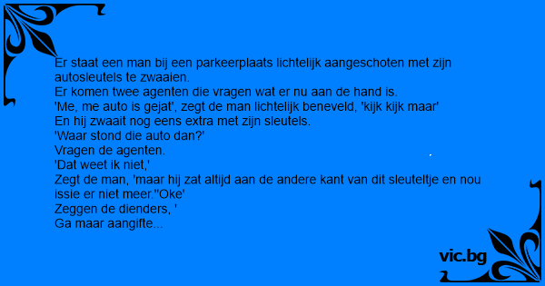 'Me, me auto is gejat', zegt de man lichtelijk beneveld, 'kijk kijk maar'