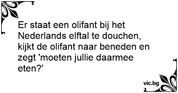 Er staat een olifant bij het Nederlands elftal te douchen, kijkt de olifant naar beneden en zegt 'moeten jullie daarmee eten?'