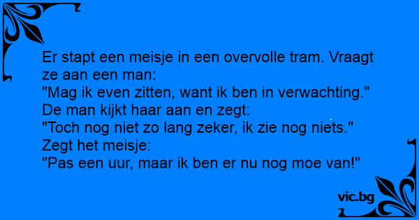 Er stapt een meisje in een overvolle tram. Vraagt ze aan een man: