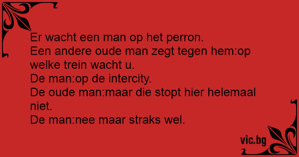 Een andere oude man zegt tegen hem:op welke trein wacht u.