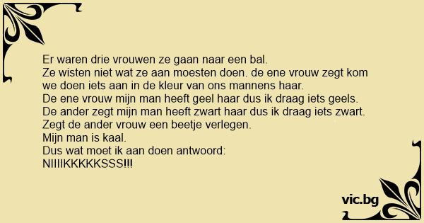 Ze wisten niet wat ze aan moesten doen. de ene vrouw zegt kom we doen iets aan in de kleur van ons mannens haar.