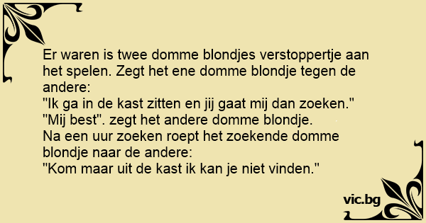 Er waren is twee domme blondjes verstoppertje aan het spelen. Zegt het ene domme blondje tegen de andere: