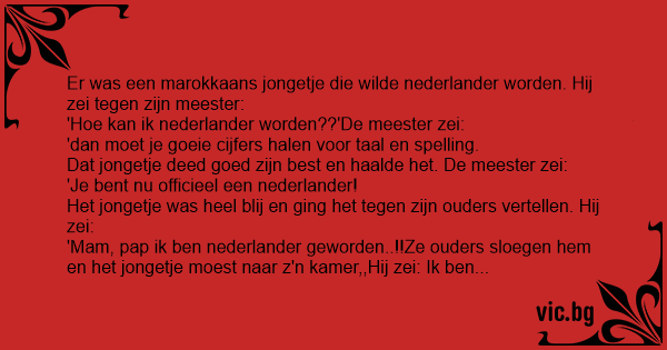 Er was een marokkaans jongetje die wilde nederlander worden. Hij zei tegen zijn meester:
