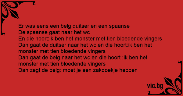 Dan gaat de duitser naar het wc en die hoort:ik ben het monster met tien bloedende vingers
