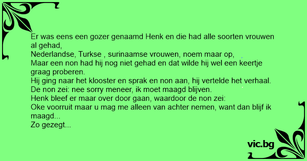 Henk bleef er maar over door gaan, waardoor de non zei:
